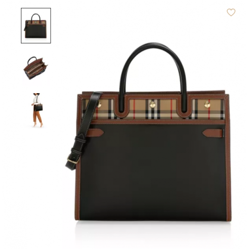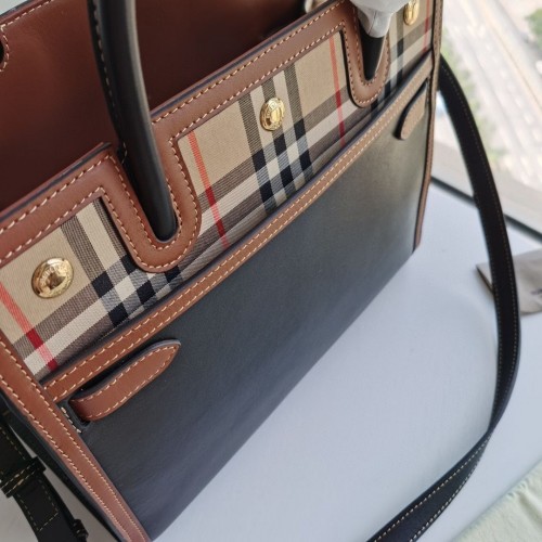 Tags: BURBERRY Calfskin Vintage Check Two Handle Title Tote Black, ,