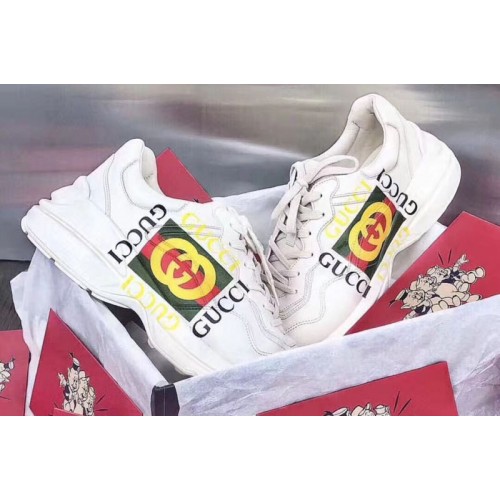 • Gucci ‎500878 Rhyton Gucci logo leather sneaker and Shoes White Leather