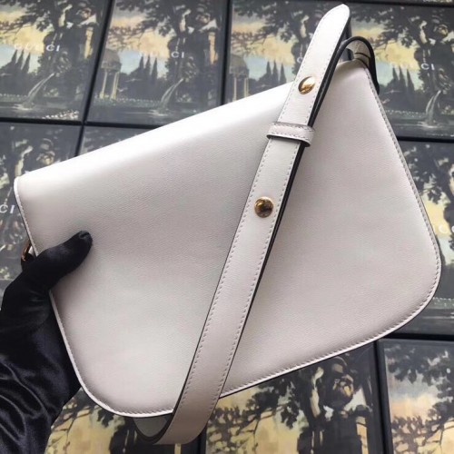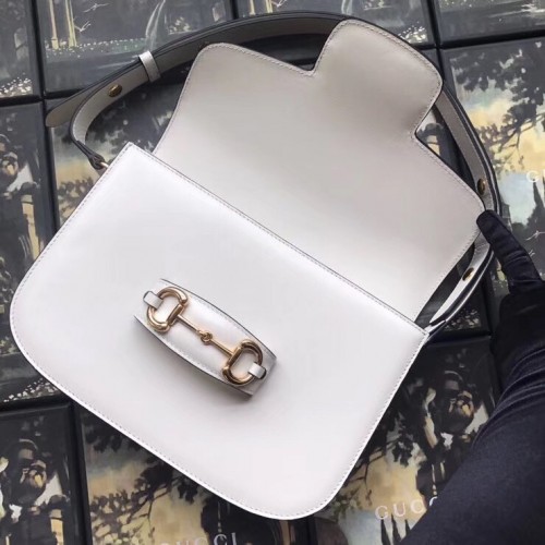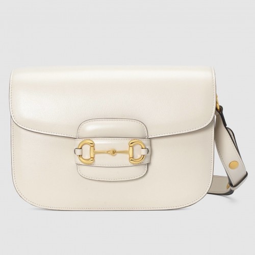 Gucci 1955 Horsebit Shoulder Bag In White Leather