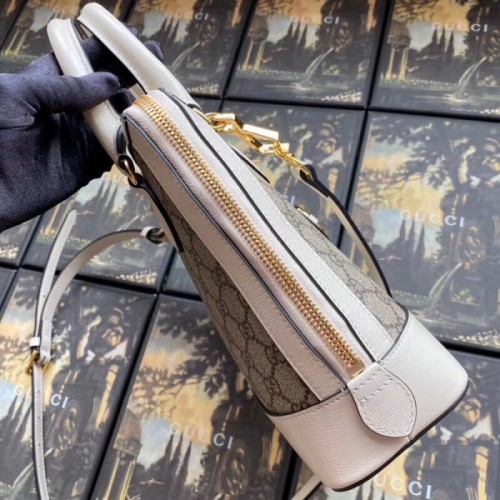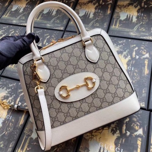 Tags: Gucci 1955 Horsebit Small Top Handle Bag In GG Supreme With White Trim, ,
