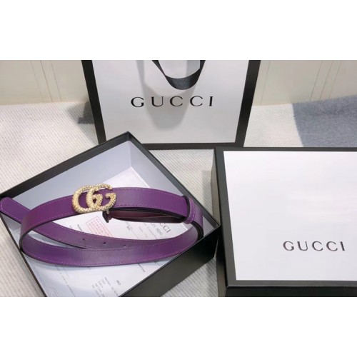 Gucci 2cm Leather belt with torchon Double G buckle in Purple Leather