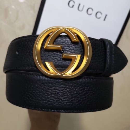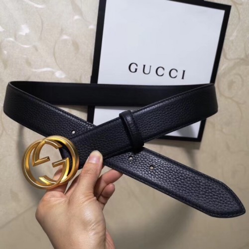 Gucci 3.8cm Wide grained Leather Belt With gold gg buckle