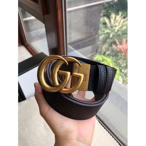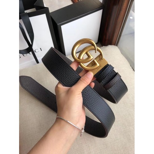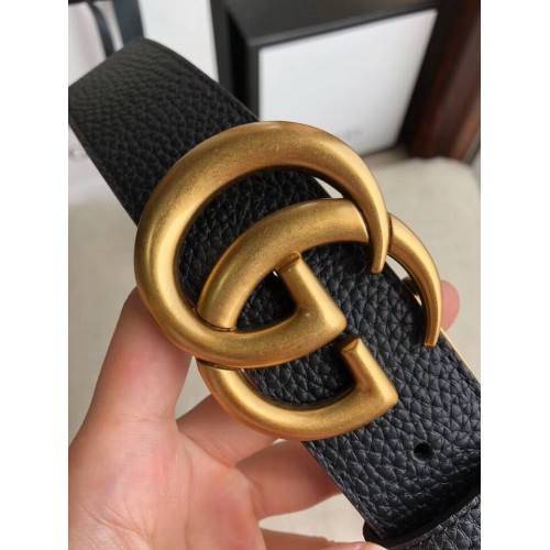 Gucci 3.8cm Wide grained Leather Belt With gold gg buckle 02