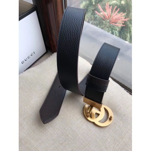 Gucci 3cm Wide Leather Belt With gold gg buckle
