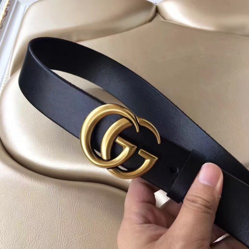 Gucci 3.8cm Wide Leather Belt With gold gg buckle black