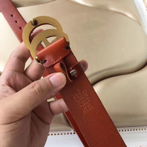 Gucci 3.8cm Wide Leather Belt With gold gg buckle burgundy