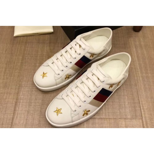 Gucci 386750 GG Ace embroidered sneaker White Leather Mens and Women Size