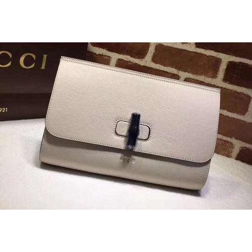 Gucci 387220 Bamboo Daily Calfskin Leather Clutch White