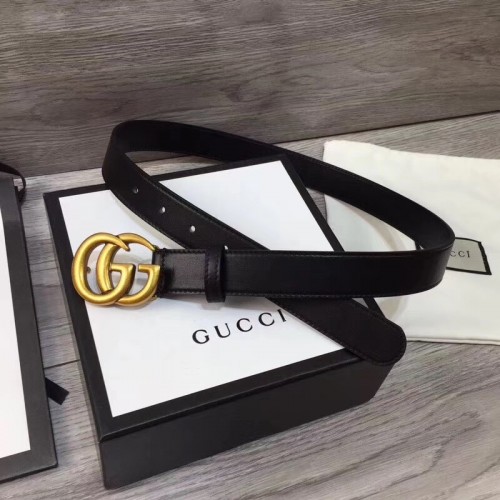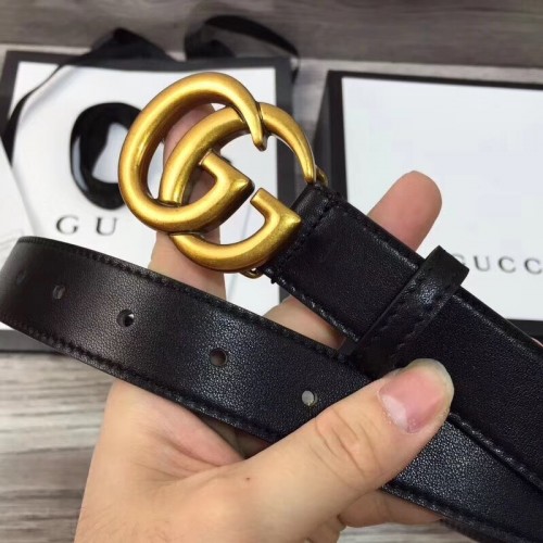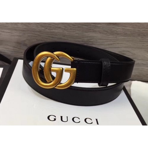 Gucci 3cm Wide Leather Belt With gold gg buckle