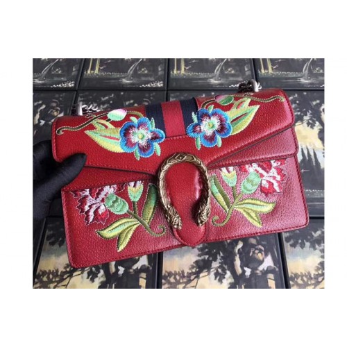 Gucci 400249 Dionysus Embroidered Shoulder Bag Red