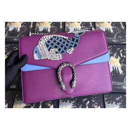 Gucci 403348 Dionysus Embroidered Leather Shoulder Bag Purple/Blue