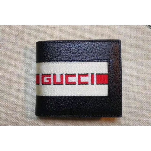 A new distinct detail of the House, the Gucci jacquard stripe draws inspiration from tape logos running down the sides of vintage tracksuits from the 80s. For Pre-Fall 2018, the sporty motif enriches a new line of accessories, that includes this wallet crafted in black grainy leather.