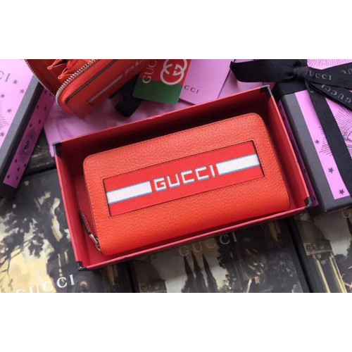 Gucci 408831 Original Calfskin Leather With Print Zip Around Wallet Red