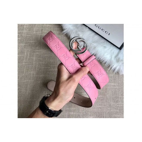 Gucci 409417 35mm Signature leather belt Pink Leather Silver G buckle