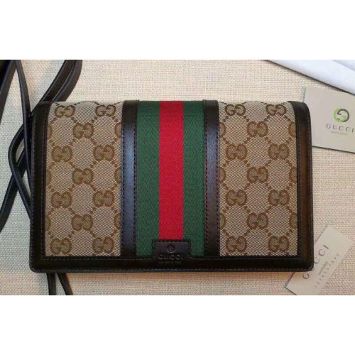 Gucci 409439 Vintage Web Wallet with Strap Coffee