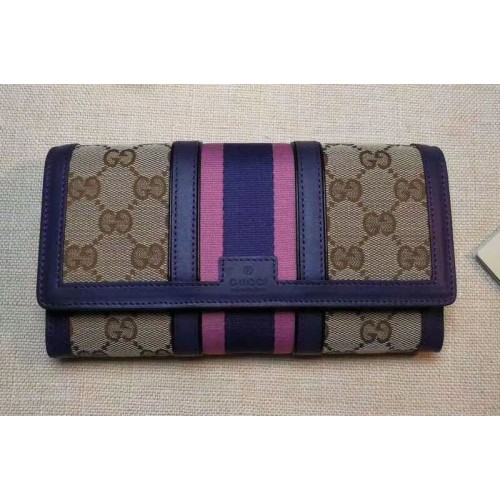 Gucci 409440 GG Supreme Canvas Leather Continental Wallet Purple