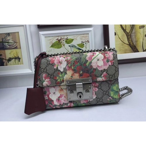 Gucci 409487 Padlock Blooms Shoulder Bag Pink