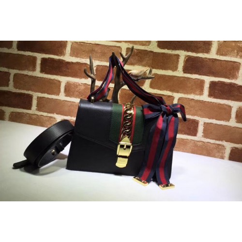 Gucci 421882 Sylvie Leather Shoulder Bags Black