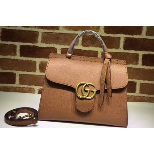 Gucci 421890 GG Marmont Leather Top Handle Bags Brown