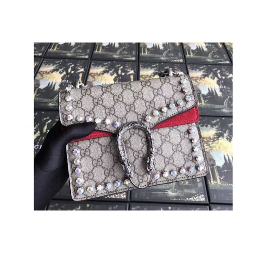 Gucci 421970 Dionysus GG Supreme With Crystals Mini Bag Red