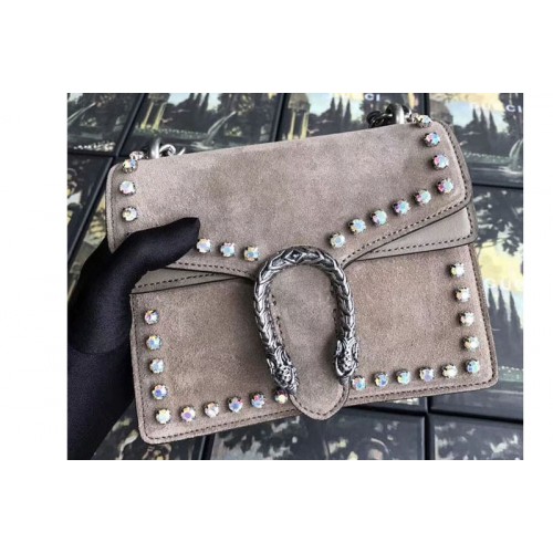 Gucci 421970 Dionysus Suede Mini Bag Grey with Crystals