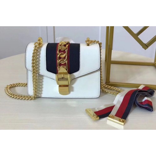 Gucci 431666 Sylvie Leather mini Chain Bag White