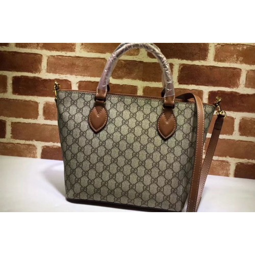 This large tote bag with a crisp structure is made of GG Supreme canvas and features brown leather p..