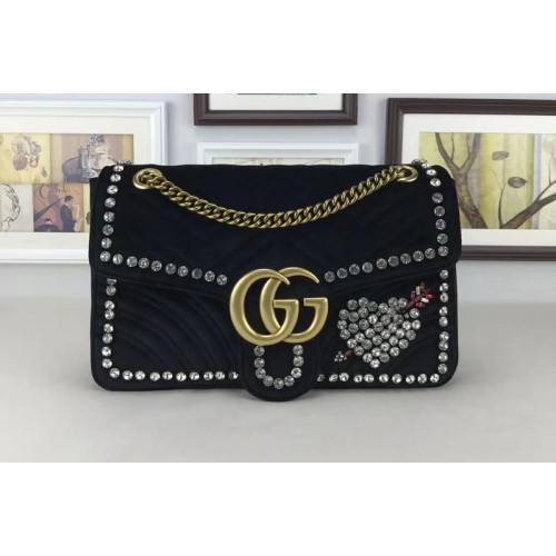 Gucci 443496 GG Marmont Velvet With Heart Shoulder Bag Black