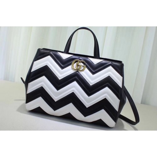 Gucci 443505 GG Marmont medium matelassé top handle bags Black/White