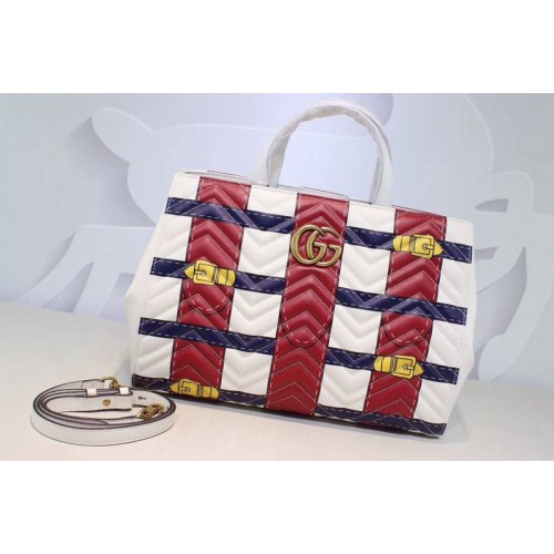 Gucci 443505 GG Marmont medium matelassé top handle bags Red/White