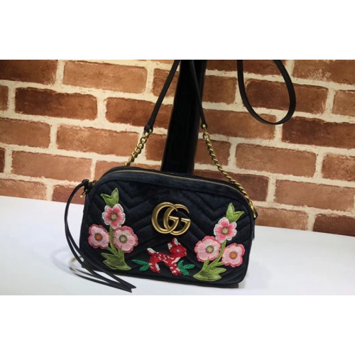 Gucci 447632 GG Marmont velvet Small Shoulder Bag Black