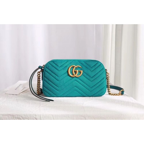 Gucci 447632 GG Marmont velvet small shoulder bag Green