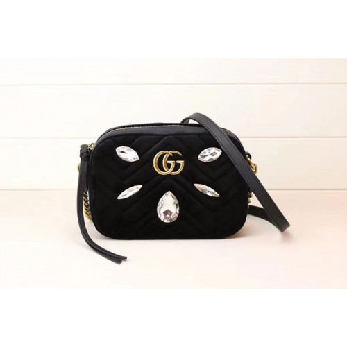 Gucci Black Velvet GG Marmont Mini Crystals Bag