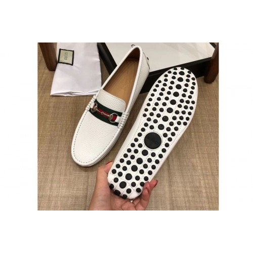 Gucci 450892 Leather driver with Web Shoes White Leather