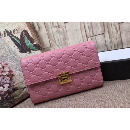 Gucci 453156 Padlock pouch Signature leather Wallets Pink