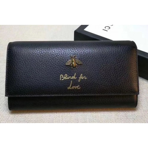 Gucci 454070 Animalier Bee And Blind For Love Continental Wallet Black