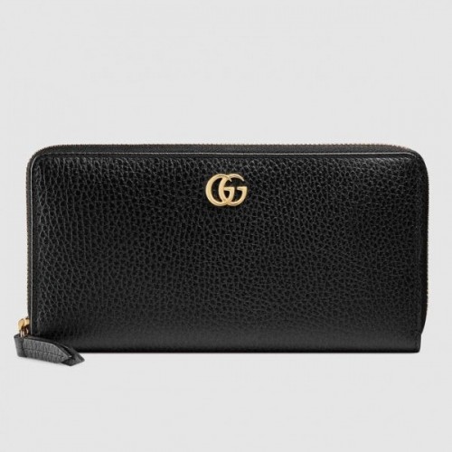 Gucci 456117 GG Marmont leather zip around wallet Black