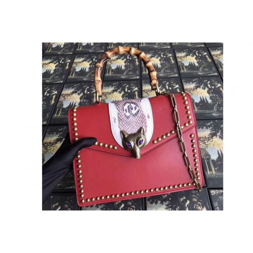 Gucci 466434 Broche Glossy Leather Top Handle Bag Red