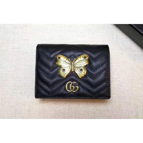 Animals thrive in the Alchemist’s Garden-a magical wellspring of signs and symbols that influence the Fall Winter 2017 collectsion. Two metal cicadas enhance the front of this GG Marmont card case. Made in matelassé leather with a chevron design and GG on the back.