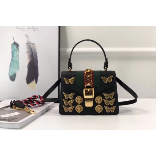 Gucci 470270 Sylvie Animal Studs Leather Mini Bag Black