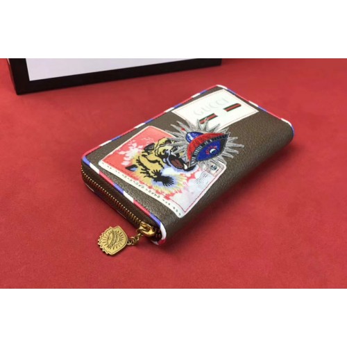 Gucci 473909 Courrier Leather zip around wallet Coffee