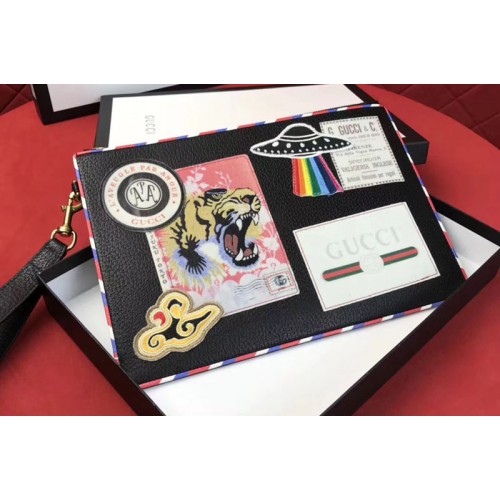 Gucci 473915 Courrier Leather pouch Bags Black