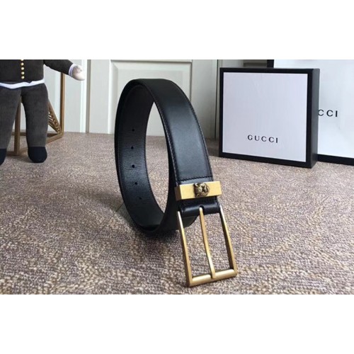 Gucci 474811 4cm Leather belt Gold buckle in Black leather