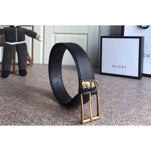 Gucci 474811 4cm Leather belt Gold snake buckle in Black leather