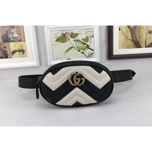 Gucci 476434 GG Marmont Matelasse Leather Belt Bags White/Black