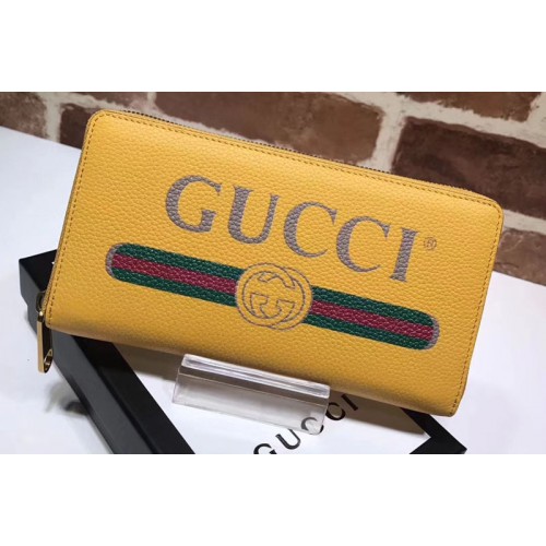 Replica Gucci 496317 logo leather zip around wallet Yellow