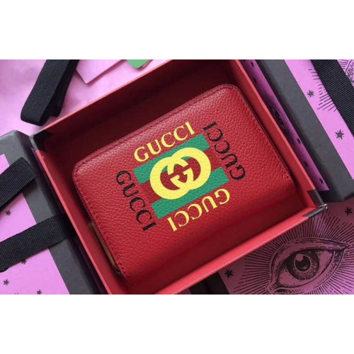 Gucci 496319 Print Leather Card Case Red