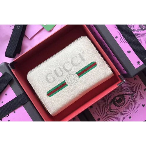 Gucci 496319 Print Leather Card Case White