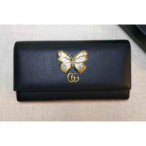 Gucci 499359 Leather continental wallet with butterfly Black