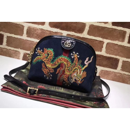 Crafted in suede with inlaid Web stripe detail, the shoulder bag has a domed shape that recalls vintage designs. Expertly embroidered by Italian artisans, the dragon motif extends across the front of the bag, speaking to the world of mystical and magical beings that now inhabit the world of Gucci.